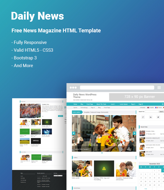 CCR Daily News HTML template will perfectly suit for your news website, Magazine, portal or blog as well. We are very much confident that you will be pleased after using this free product developed by our expert CodexCoder team.